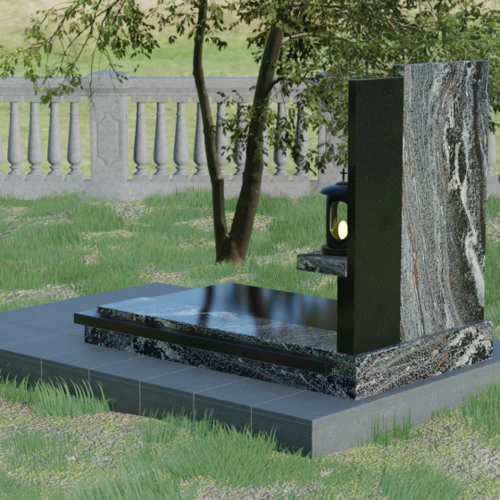 Кому подойдет: Данная модель является универсальной благодаря своему лаконичному и одновременно глубокому дизайну. Она станет достойным выбором как для мужчины, так и для женщины. Строгость линий и золотые акценты подчеркнут статус и мужество, а плавные изгибы верхней грани привнесут нотки женственности и нежности. Этот мемориал выбирают те, кто хочет выразить глубокое уважение и создать на кладбище место, преисполненное достоинства и тишины, где каждый элемент — от лампады до фактуры камня — говорит о вечной любви.