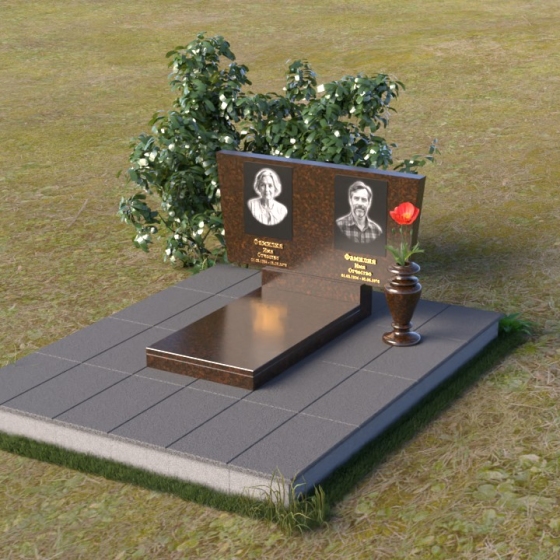 Асимметричная форма стелы не случайна. Она символизирует жизненный путь, который не всегда бывает прямым и предсказуемым. Скошенный угол, напоминающий крыло, несет в себе идею защиты и утешения, а также веру в загробную жизнь. Зеркальная полировка, в свою очередь, отражает свет и символизирует чистоту души и вечную память. Горизонтальная плита, расположенная под стелой, олицетворяет землю, на которой покоится прах усопших, и одновременно служит связующим звеном между земным и небесным мирами. Общий вид памятника создает ощущение покоя и умиротворения, приглашая к тихой молитве и воспоминаниям.