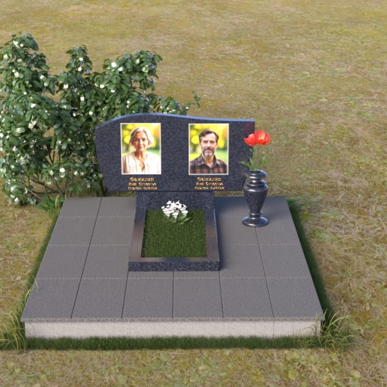 Оформление: Для этой формы стелы рекомендуется выбирать портреты с четкими контурами, чтобы гравировка максимально точно передала образ усопшего. Имена и даты рождения можно разместить под портретами, используя элегантный шрифт с золотым напылением, что придаст ритуальному изделию дополнительную торжественность.