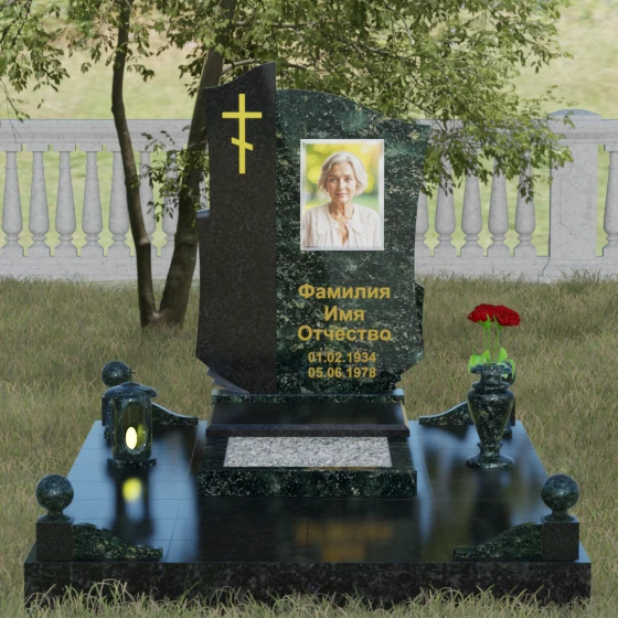 Мы понимаем, как важно передать индивидуальность ушедшего человека, поэтому данная модель доступна в 8 эксклюзивных цветовых решениях. Вы можете выбрать благородный черный гранит Габбро-диабаз, изысканный гранит Амфиболит с его неповторимым рисунком, глубокий Балтик Грин, мерцающий Блю Перл или насыщенный Дымовский. Для создания более теплых или контрастных композиций доступны яркий Лезниковский гранит, белоснежный Мансуровский или премиальный мрамор Тассо. Такое многообразие палитры позволяет подобрать камень, который будет максимально точно соответствовать характеру и жизненному пути дорогого вам человека.